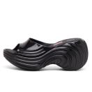 この未来的なオープントゥプラットフォームシューズは、波のようなデザインにアイコニックなオーバルDのモノグラムが組み込まれ、うねりのあるチャンキーソールにセットされています。