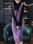 【レディース】エレガント Vネック セーター ドレス - 長袖 オフィス パーティー 服装、ボタンフロント、普段使いやフォーマルなイベントに合うフィット感 - 春/秋の移行シーズン