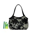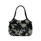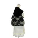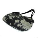 黒とベージュの花柄が特徴的な布製グラニーバッグ。