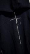 こちらの表面が独特の質感になっておりレザー紐や背中のハンドクロスステッチ等とてもかっこよく、また人気のロング丈モデルのパーカーです。
