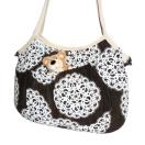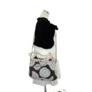 白のドイリーレース模様が特徴的なグラニーバッグ。中央に外ポケット。