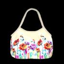 カラフルな花柄が特徴の布製グラニーバッグ。