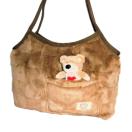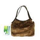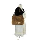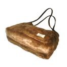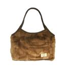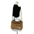 シェーディングカットのファー素材のキレイなキャメル色バッグ、ポケットが特徴。