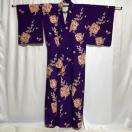 送料込 銘仙 アンティーク 着物 小紋 袷 紫 青 花柄 正絹
