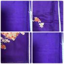 銘仙 アンティーク 着物 小紋 袷 紫 青 花柄 正絹