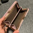 落ち着いたカラーとシンプルなデザインの口金折財布。
