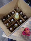 ストレート果汁のりんごジュースです。中玉のりんご80個くらいで12本のジュース出来ています。