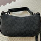 ● ブラックシグネチャーレザーのショルダーバッグ、ダブルポケット付きで実用的なバッグです。