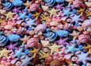 貝がら、いそぎんちゃく、シンジュ等の立体柄の大きめの布バックです。