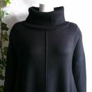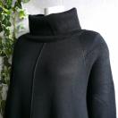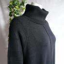 ゆったり大きめのリブ編みタートルネックと一部がリブ編みになったラグラン袖がスタイリッシュな雰囲気を。