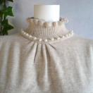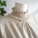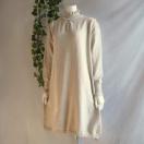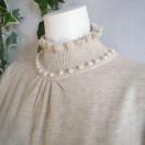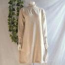 パールがフリルハイネックと袖口に施された華やかなニットチュニックワンピースです。