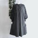 太い線と細い線が印象的なストライプ柄の高級シャツワンピースです。