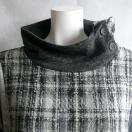 ゆったりとしたハイネックに飾りボタンを添えて、顔まわりを上品に引き立てます。