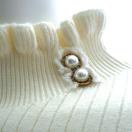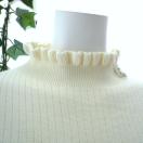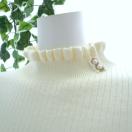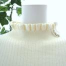 襟元に施されたパール調ビジューとラインストーンのモチーフがブローチのように輝く、フリルハイネックの上品ニットです。