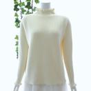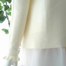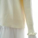 すっきり見えするリブ編み仕立てに、袖口のフリルで手元も華やかに見せてくれます。