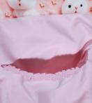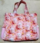 薄ピンク色生地に可愛い立体ウサギちゃん柄のバックにマグミットボタンを付け 外ポケット2ヵ所に可愛いリボンを付けました。
