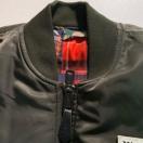 ALPHA INDUSTRESとX-LARGEのMA-1フライトジャケット、Lサイズ、チェック柄の内側デザイン。