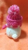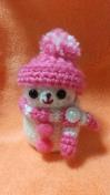 大きなポンポン帽子とマフラーのうさちゃん雪だるまです。