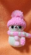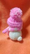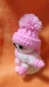 大きなポンポン帽子とマフラーのうさちゃん雪だるまです。