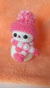 大きなポンポン帽子とマフラーのくまちゃんです。