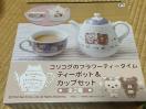 コリラックマとチャイロイコグマがデザインされたティーポットとカップがセットになっています。