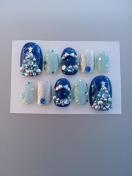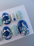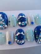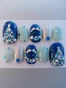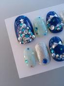 ベース★濃いブルー・パール入りの水色に雪の結晶・シルバーラメ