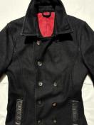 牛革レザー装飾のある起毛ウールアウターなので高額モデル