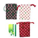 ・サンタクロース柄の巾着、緑と赤と白の3点セット。