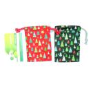 ・クリスマスツリー柄の巾着、緑と赤の2点セット。
