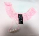 レース素材のソフトピンク色のTバック、パール装飾付きでセクシーなデザイン。