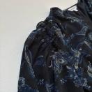ネイビーで描かれた花柄とペイズリーが