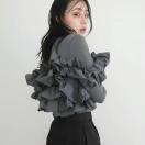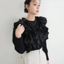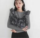 新品フリルたくさん2way暖かい素材デザイントレーナー韓国ファッション