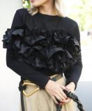 フリルたっぷりの華やかなデザインが魅力のトレーナーです。