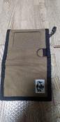 ナイロン素材のコンパクトな二つ折り財布、カードポケット多数で機能的。