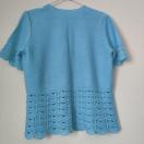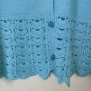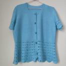 レーストリム付きの水色半袖カーディガンで、軽やかなデザインが特徴です。