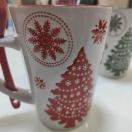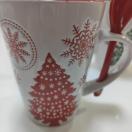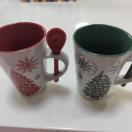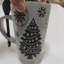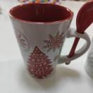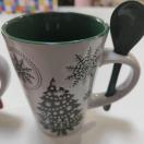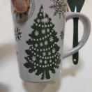 クリスマスデザインのマグカップ、スプーン付きで便利。