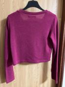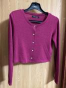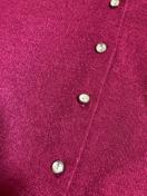 短め丈で形はスッキリしています。キラキラしたビジュボタンとカーディガンの色でシンプルなワンピースやボトムスでも華やかになります。(画像4 ボタン 生地アップ)
