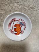 クマがサーモンを持つ可愛いデザインのまめ皿。