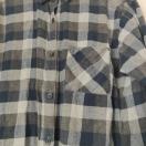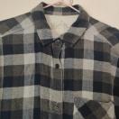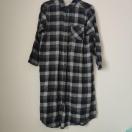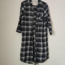 ネイビーとグレーのチェック柄の長袖シャツワンピース、サイズS。