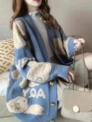超お買い得3390円★ミドル丈ニットカーディガン ロングスリーブプルオーバージャケット USAサイズM(日本サイズXL相当)青