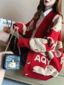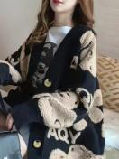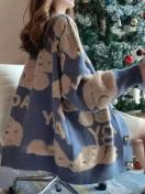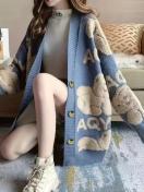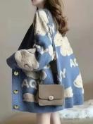 ミドル丈ニットカーディガン - ソフトロングスリーブプルオーバージャケット、秋冬日常着用に最適なフロントオープンデザイン、かわいいジャカードベア柄の快適厚手コート、ファッション秋冬ジャンパーカジュアルゆったりミディアムストレッチ生地オフィスアウトフィット
