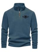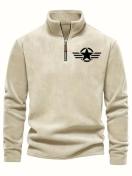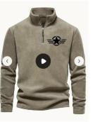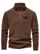 メンズ クラシック ブラック フリース プルオーバー スターロゴ入り - スタンドカラー、長袖、ジップアップ、カジュアルスタイル、秋に最適、カジュアルウェア|スタイリッシュプルオーバー|ジッパートップ