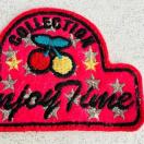 背景にシルバーや黄色の星マークがあり、「Enjoy Time」などの英字ロゴ入り!