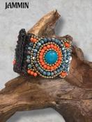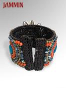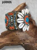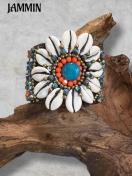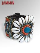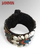 貝やストーンビーズ、ブラスビーズなどを沢山使ったボリュームあるブレスレットです。