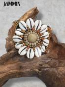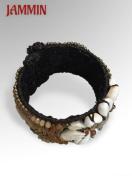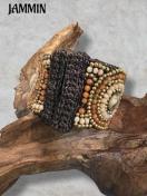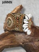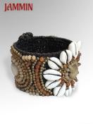 貝やストーンビーズ、ブラスビーズなどを沢山使ったボリュームあるブレスレットです。