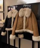 ファー襟ジャケット/防寒厚手アウター女/スエードジャンパー