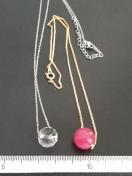 カット水晶と、紅西瓜という氷翡翠のペンダントです。ハンドメイドなので神経質な方はご遠慮ください。