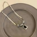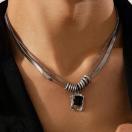 2統合リングピース、スクエアペンダント、フラットスネークボーンネックレス、ユニークミニマリストヒップホップスタイルネックレス、男性向けサイドチェーンペンダントジュエリー、男性へのギフトに適しています。