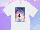 黒のTシャツに鮮やかに映える光のグラデーションは、身にまとうだけで周囲の視線を惹きつける存在感。