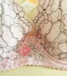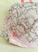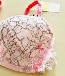 ステッチが浮き立つ繊細なレースのカップに、アップリケの花々を寄り添うように咲かせました。カップ肌側の不織布と、D~Fカップは安定感のある脇ボーン入りで、きれいなシルエットをサポート。